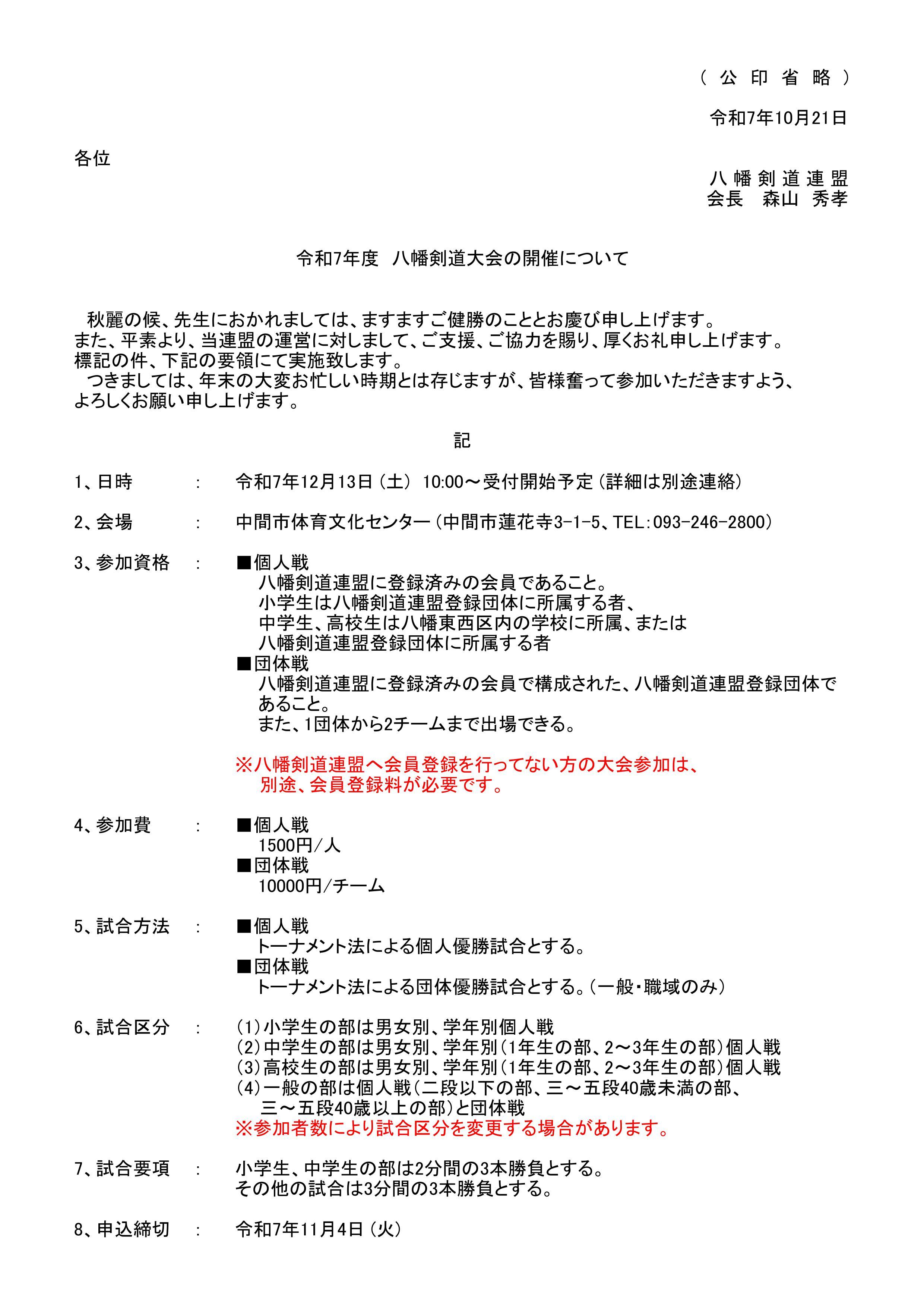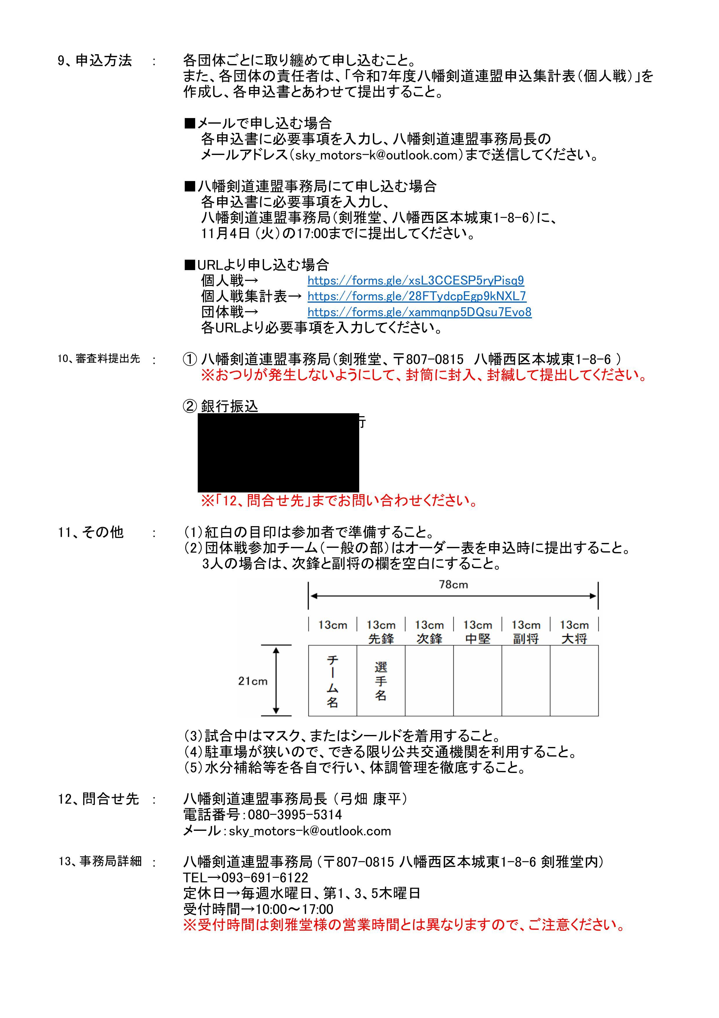 ※必要事項を入力し送信。参加費は封入封緘し、締切までに八幡剣連事務局へ提出。